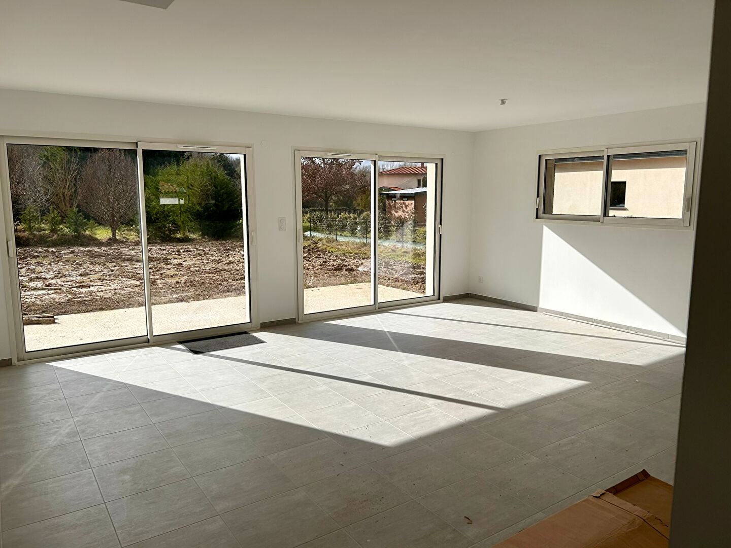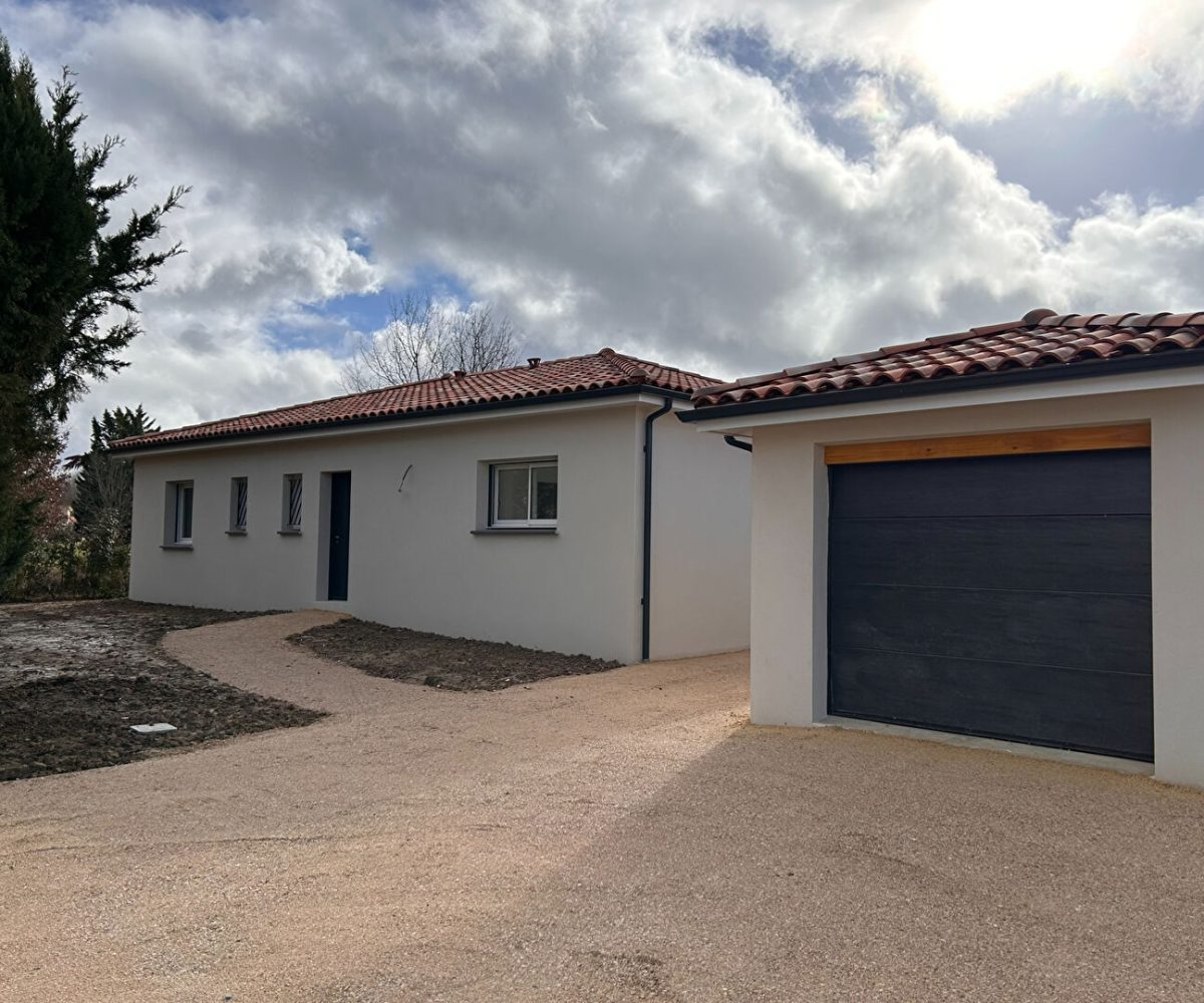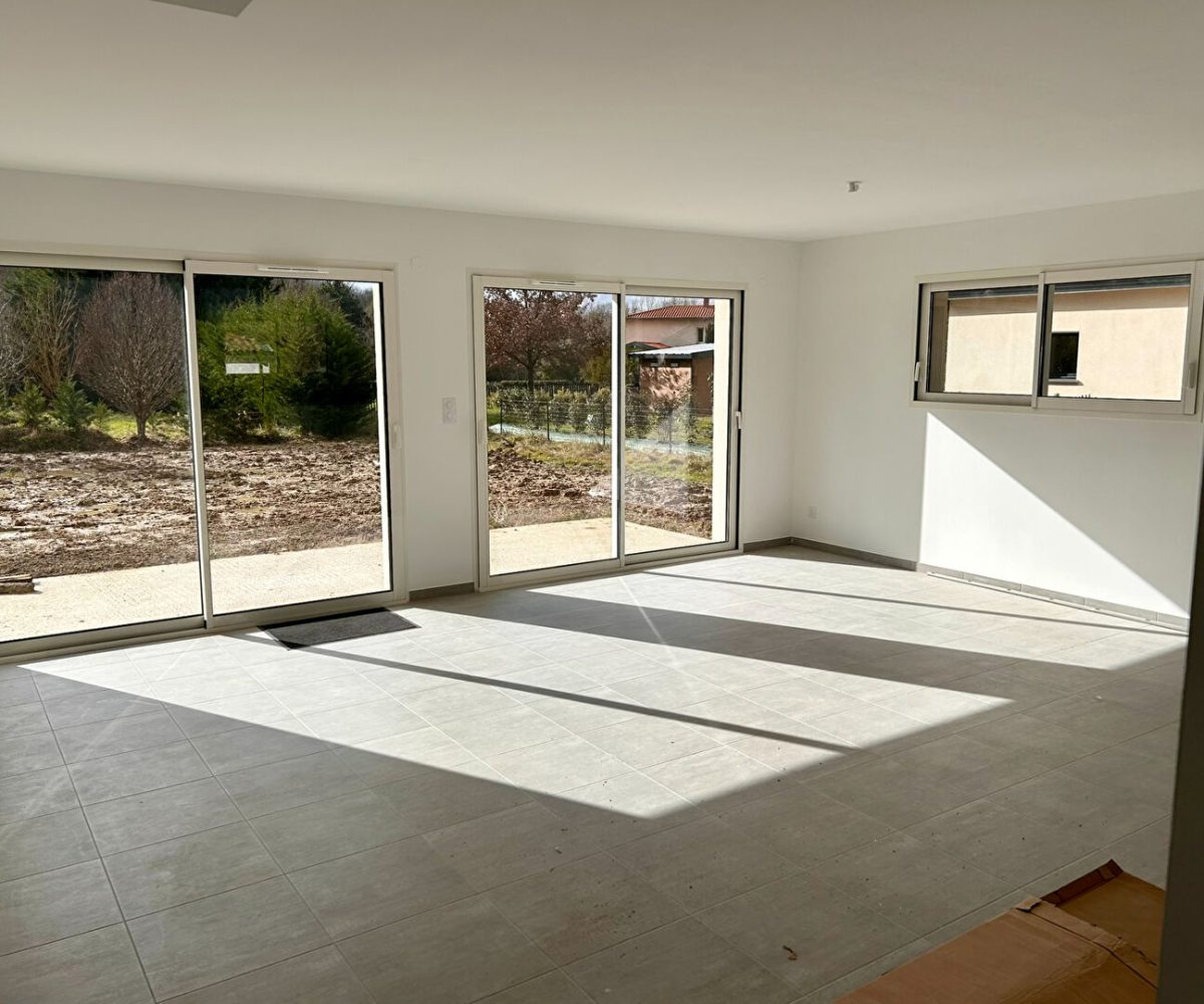 Location Montauban St Martial, chemin de Pinceguerre maison contemporaine neuve répondant aux dernières normes en matière d’isolation comprenant une entrée avec une belle pièce de vie de 52 M2 s’ouvrant directement sur l’extérieur.
