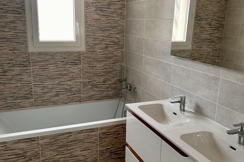 Le coin nuit avec 3 chambres, une belle salle de bains (baignoire douche) un WC séparé.