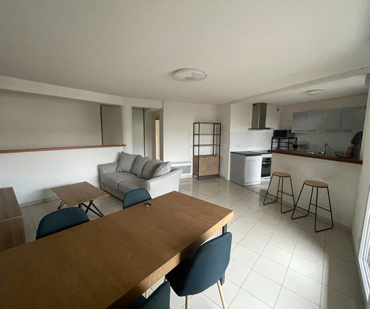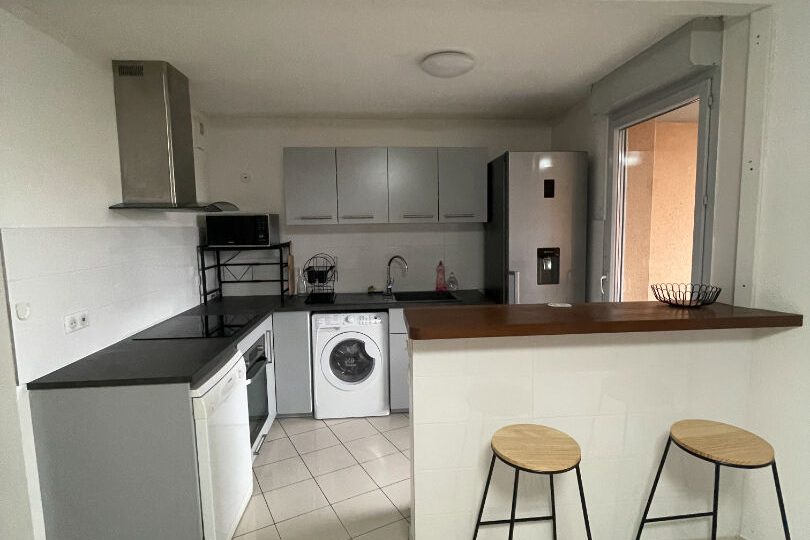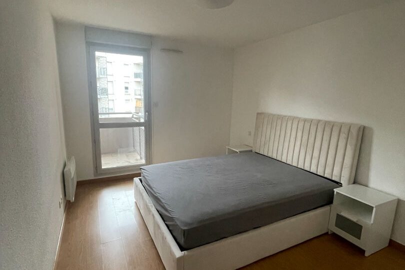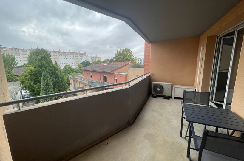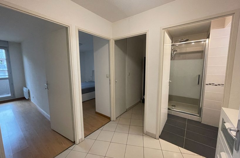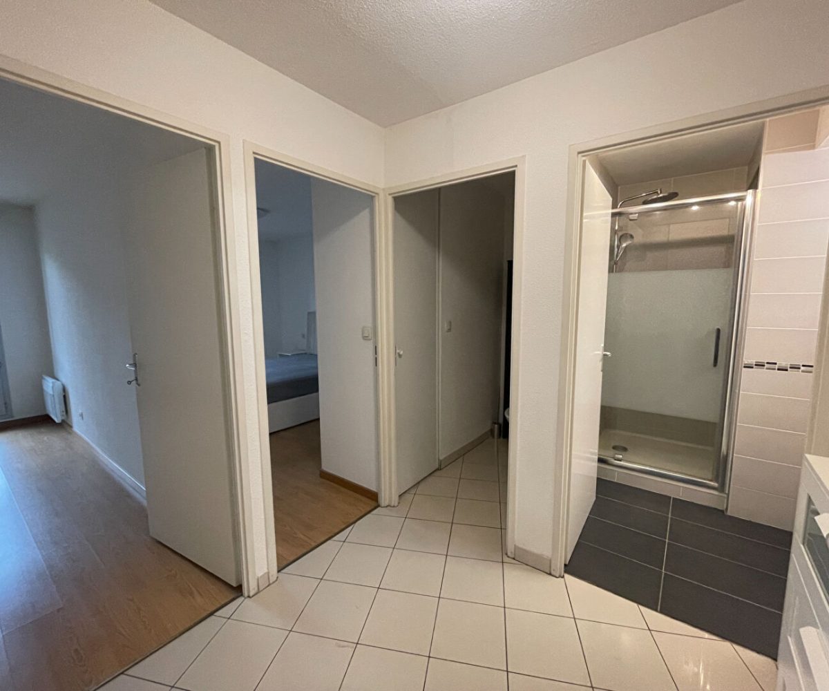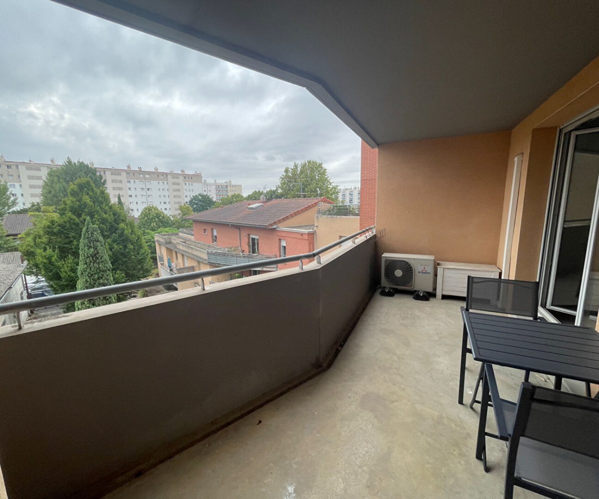 Location Toulouse bv Silvio Trentin,agréable T3 meublé comprenant une entrée avec placard, un séjour avec un coin cuisine s’ouvrant sur une terrasse. Les 2 chambres ont leur propre terrasse ,une salle d’eau et un WC.