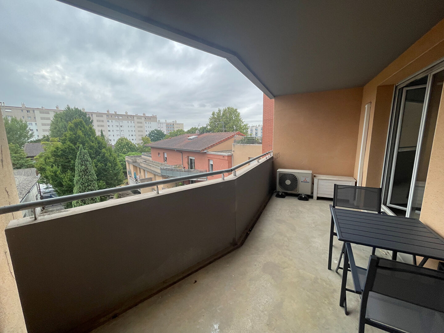 Location Toulouse bv Silvio Trentin,agréable T3 meublé comprenant une entrée avec placard, un séjour avec un coin cuisine s’ouvrant sur une terrasse. Les 2 chambres ont leur propre terrasse ,une salle d’eau et un WC.
